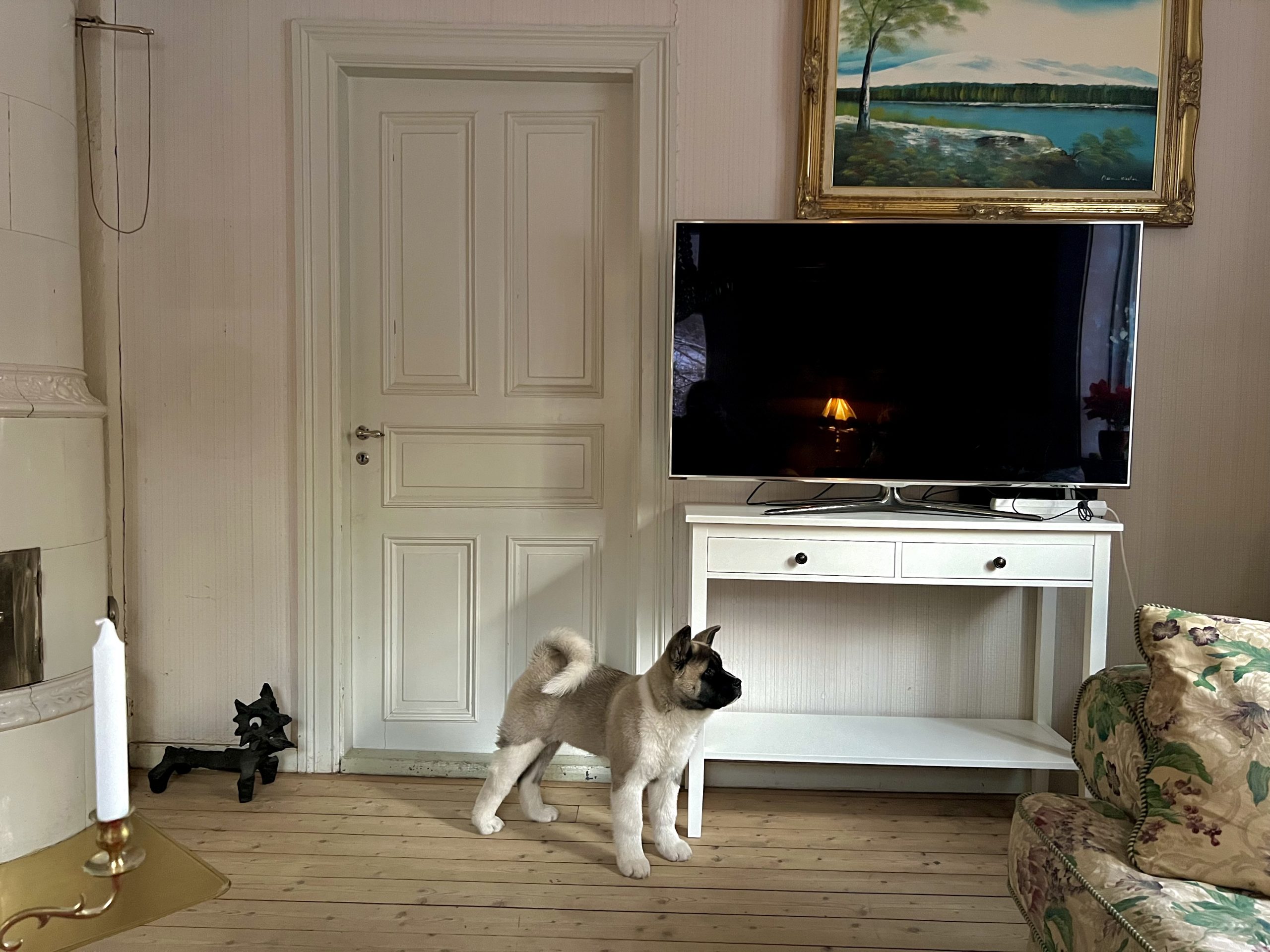 Att det är varmt och skönt i hela huset, istället för de ynka nio graderna vi hade inomhus när vi flyttade hit. 22 element värmer nu huset, och det kommer bli ett par till. Den nya pannan är effektiv, och så även den nya vedspisen. Kakelugnarna fungerar nu också jättebra. Det är slitsamt att värma huset med egen ved. Men det ger en väldigt go värme och vardagsmotion, samt minimerar uppvärmningskostnaden. Nedan syns vedspisen som också går att laga mat på:)